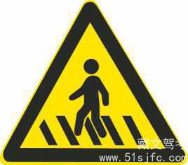 解析:黄色背景的标志是警示标志,蓝色背景的标志才是指示标志,把这个标牌的背景换成蓝色就是人行横道了。做这种题时最重要的是先确定标志牌是什么类型,然后挨个排除错误选项。因此这一题选B,是注意行人。