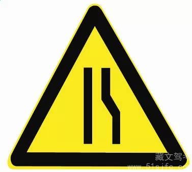 解析:右侧变窄:用以警告车辆驾驶人注意前方车行道或路面狭窄情况,遇有来车应予减速避让。设在双车道路面宽度缩减为6m以下的路段起点前方。